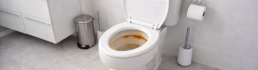 Mictórios e vasos com tubulações antigas ou oxidadas.