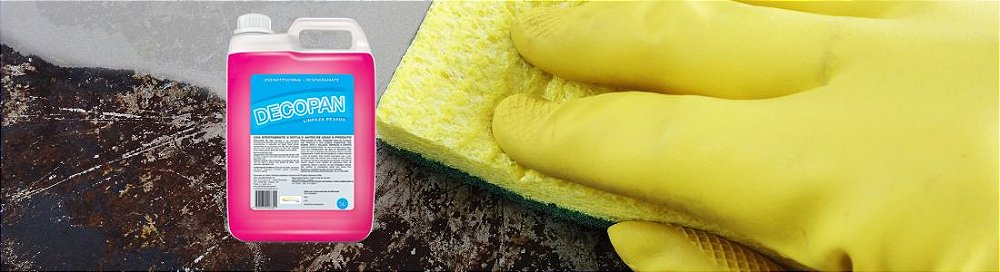 O Decopan foi desenvolvido com fórmula alcalina concentrada e tensoativos de alto poder desengordurante, capazes de romper a aderência da gordura e da sujeira pesada com rapidez.